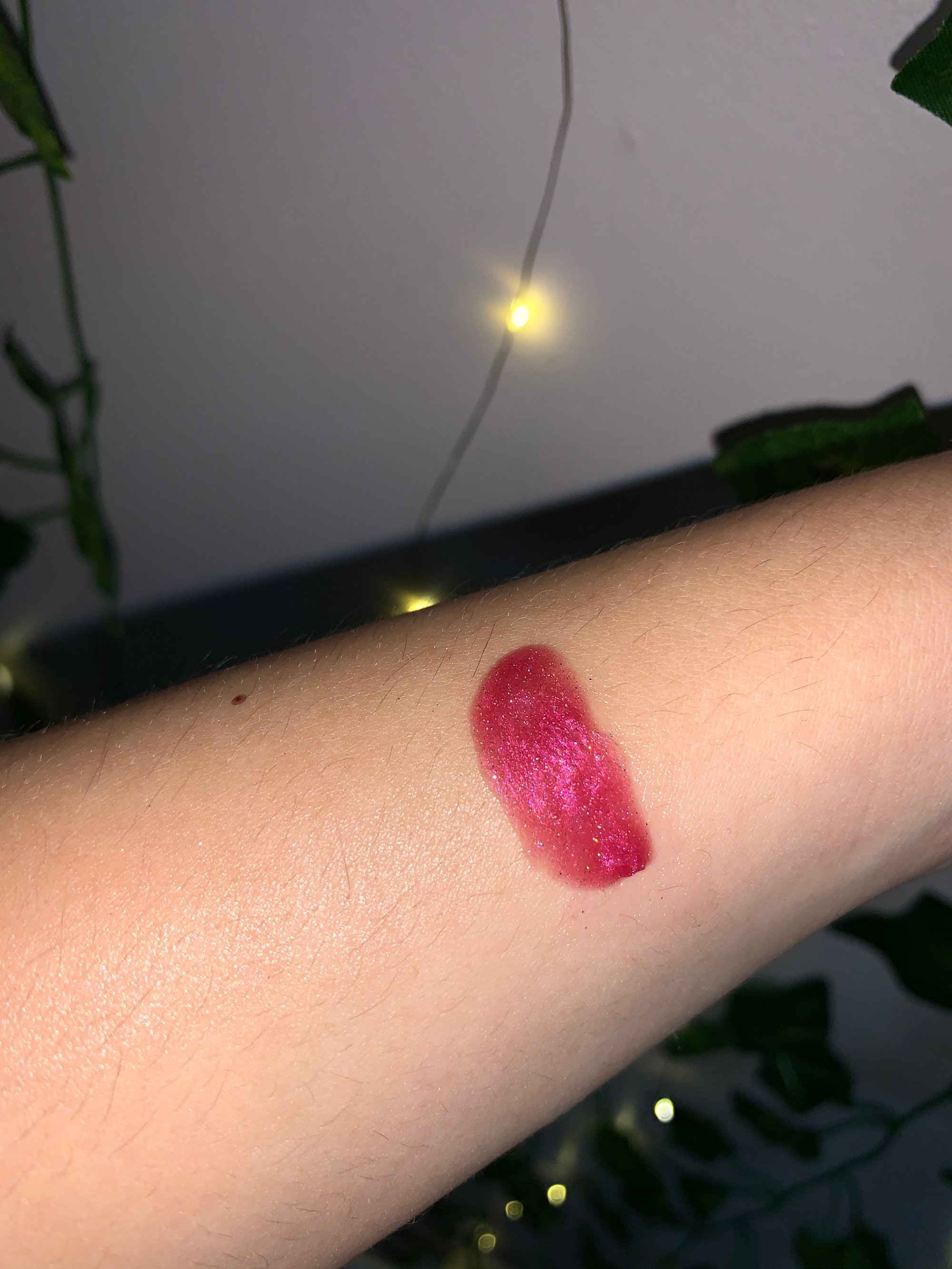 Berry Gurly is a combination of red and purple shades. It is a raspberry flavored lipgloss. It has a hint of mauve and silver holographic glitter hues. This is a smooth, hydrating, and non-sticky lipgloss.